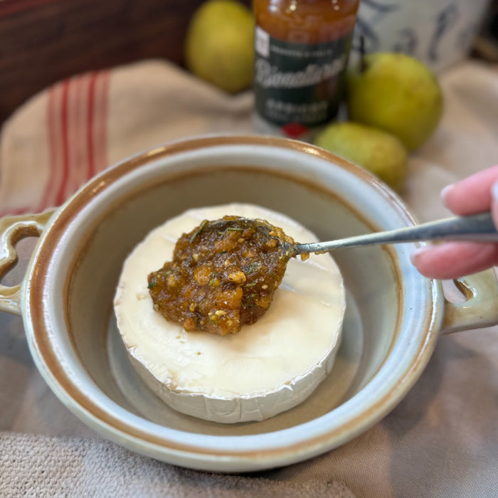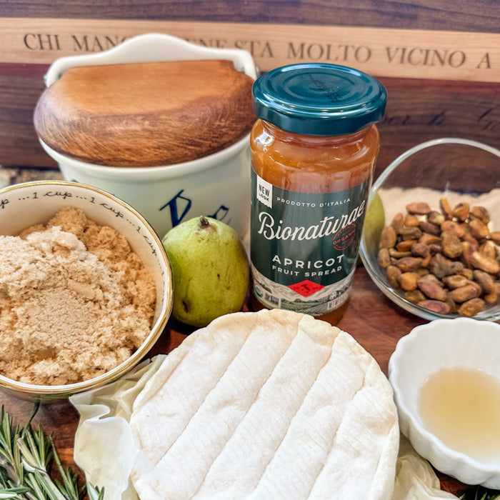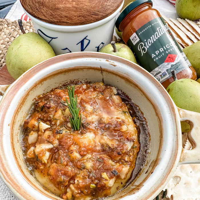 Recipe by Dena Fenza. There’s nothing quite like the simple pleasure of warm, baked Brie—and this version, topped with Bionaturae’s Organic Fruit Spread, makes entertaining effortless and elegant. The natural sweetness of our fruit spread perfectly complements creamy cheeses like Brie, while fresh pears, toasted pistachios, and a hint of rosemary add texture and flavor to every bite. Whether you're hosting a holiday gathering or adding a little something special to your next get-together, this recipe is an extremely simple and crowd-pleasing appetizer!