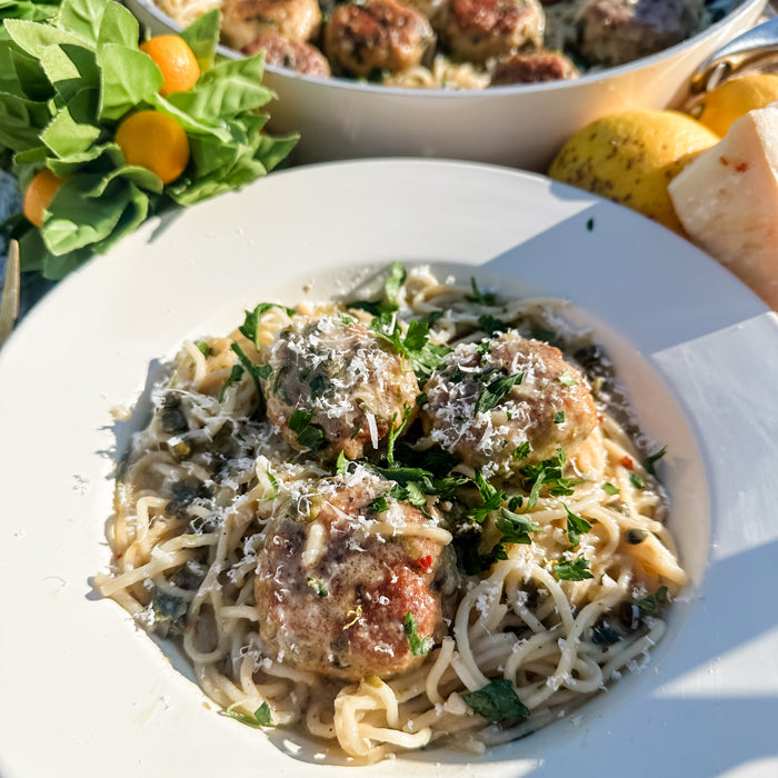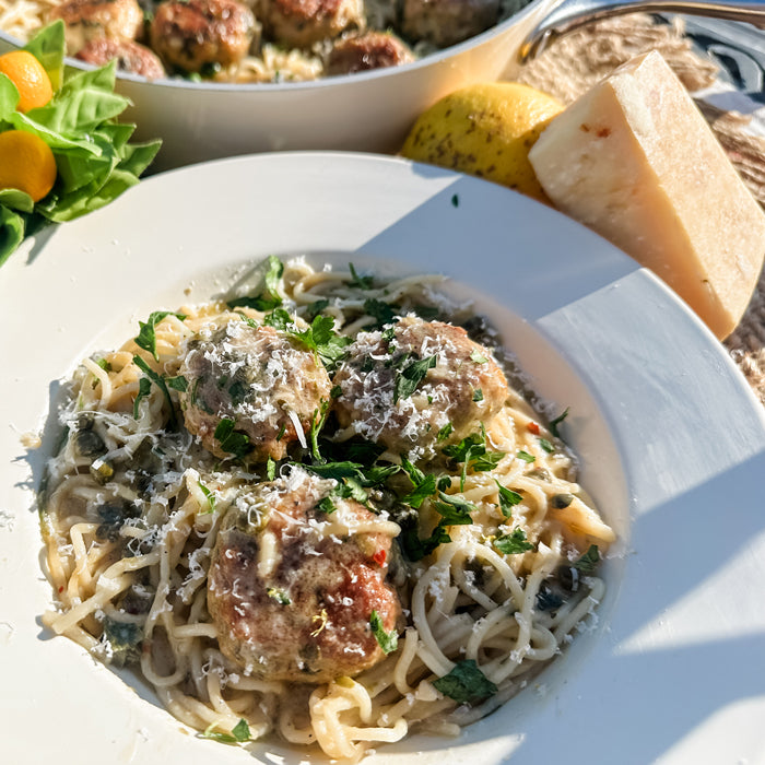 Recipe by Dena Fenza. “Now, I love a good pasta dish, but pieces of chicken just don’t belong in my bowl—it's just not how we did it growing up, and you won’t typically find it in authentic Italian cuisine either. But these chicken meatballs? They’re an absolute game-changer!” Paired with Bionaturae’s Capellini from Italy, this dish is as mouthwatering as it looks. Enjoy for a comforting, delicious meal—that’s also packed with protein!