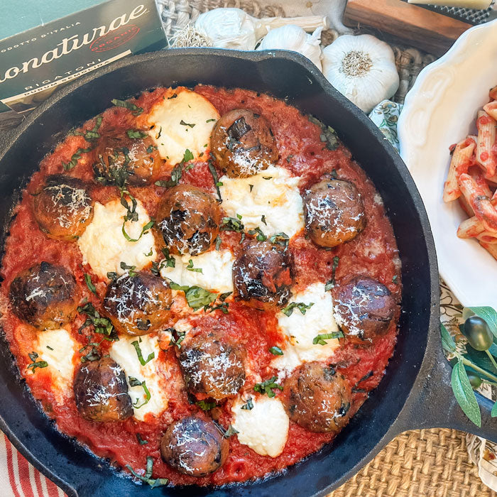 Recipe by Dena Fenza. These Eggplant Meatballs are not just the perfect meatless alternative to traditional meatballs, they may quickly become your favorite meatballs! This recipe also includes a simple (but incredible) homemade marinara sauce, made with only 8 ingredients, including our 100% Organic Tomatoes and Extra Virgin Olive Oil. We love to serve this marinara over any Bionaturae Organic Pasta shape of your choice, followed by a second course of delicious Eggplant Meatballs and a salad—a wonderful combination for a big Sunday dinner. If you have extra marina sauce or even make a double batch, this recipe is freezer-friendly and extremely versatile, perfect for chicken or eggplant parmigiana or homemade pizza!