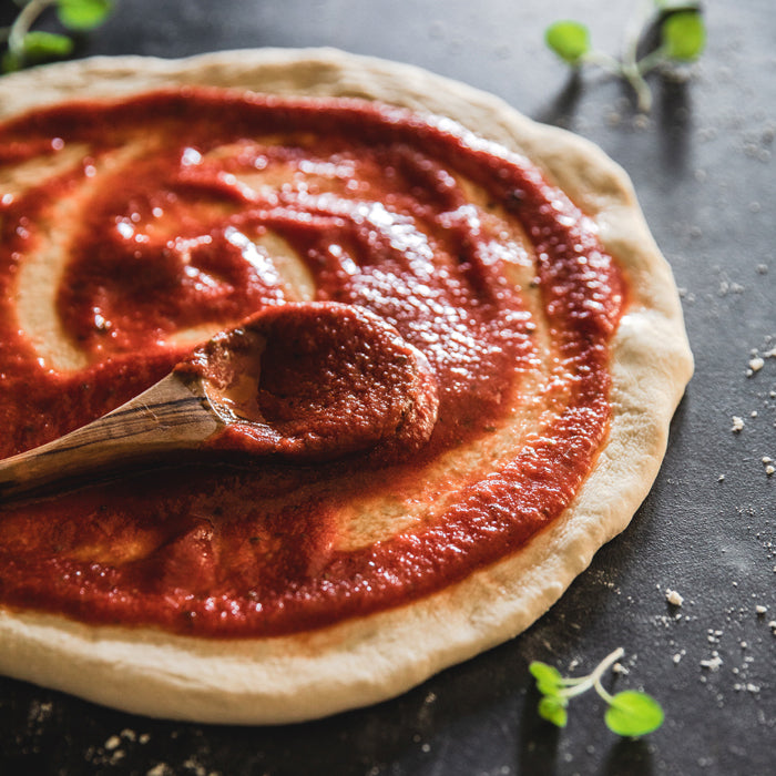This delicious, yet simple pizza sauce recipe comes together in minutes with four ingredients: Bionaturae Strained Tomatoes, Bionaturae Extra Virgin Olive Oil, fine sea salt, and dry oregano. Ready for pizza night!