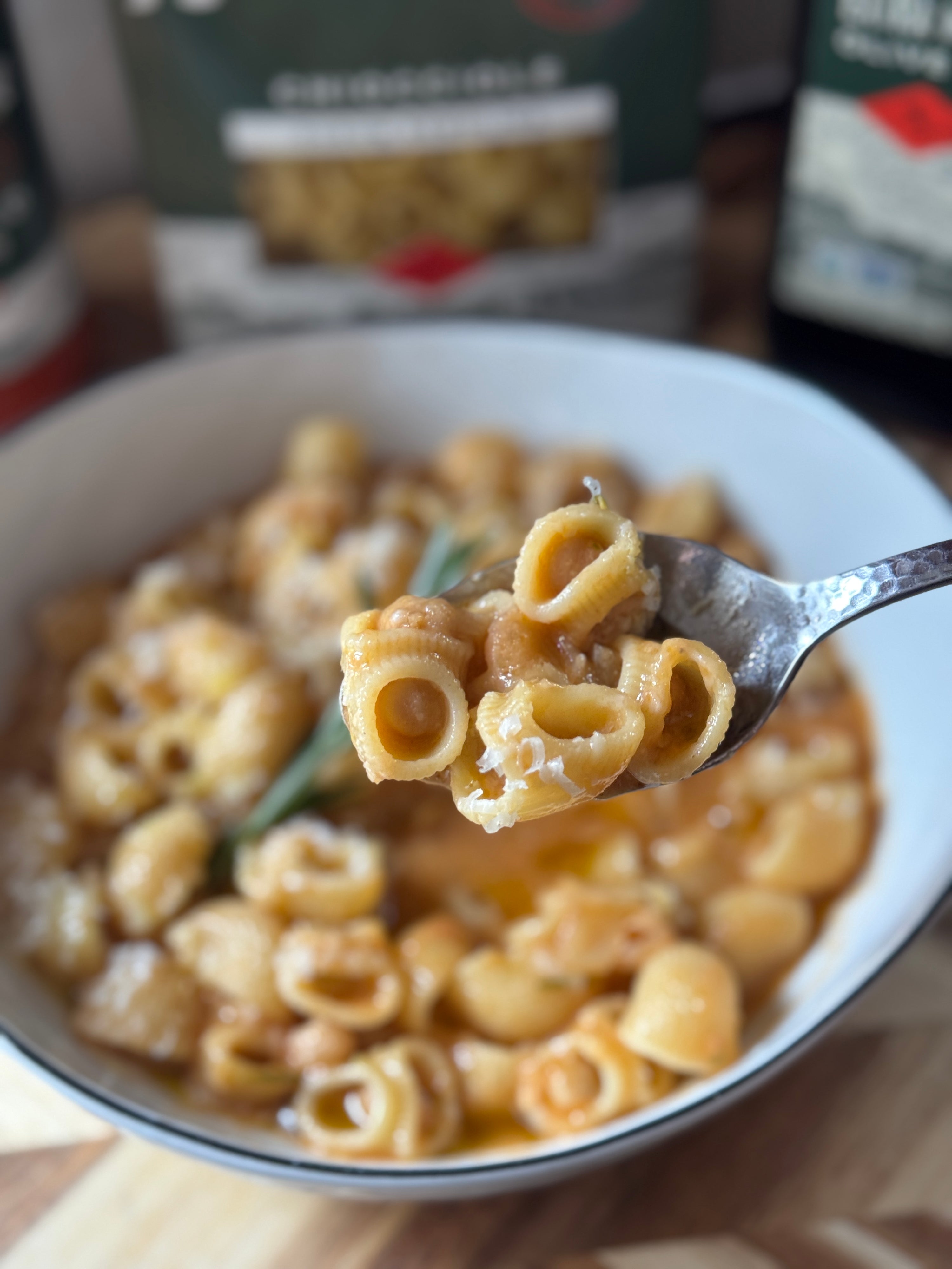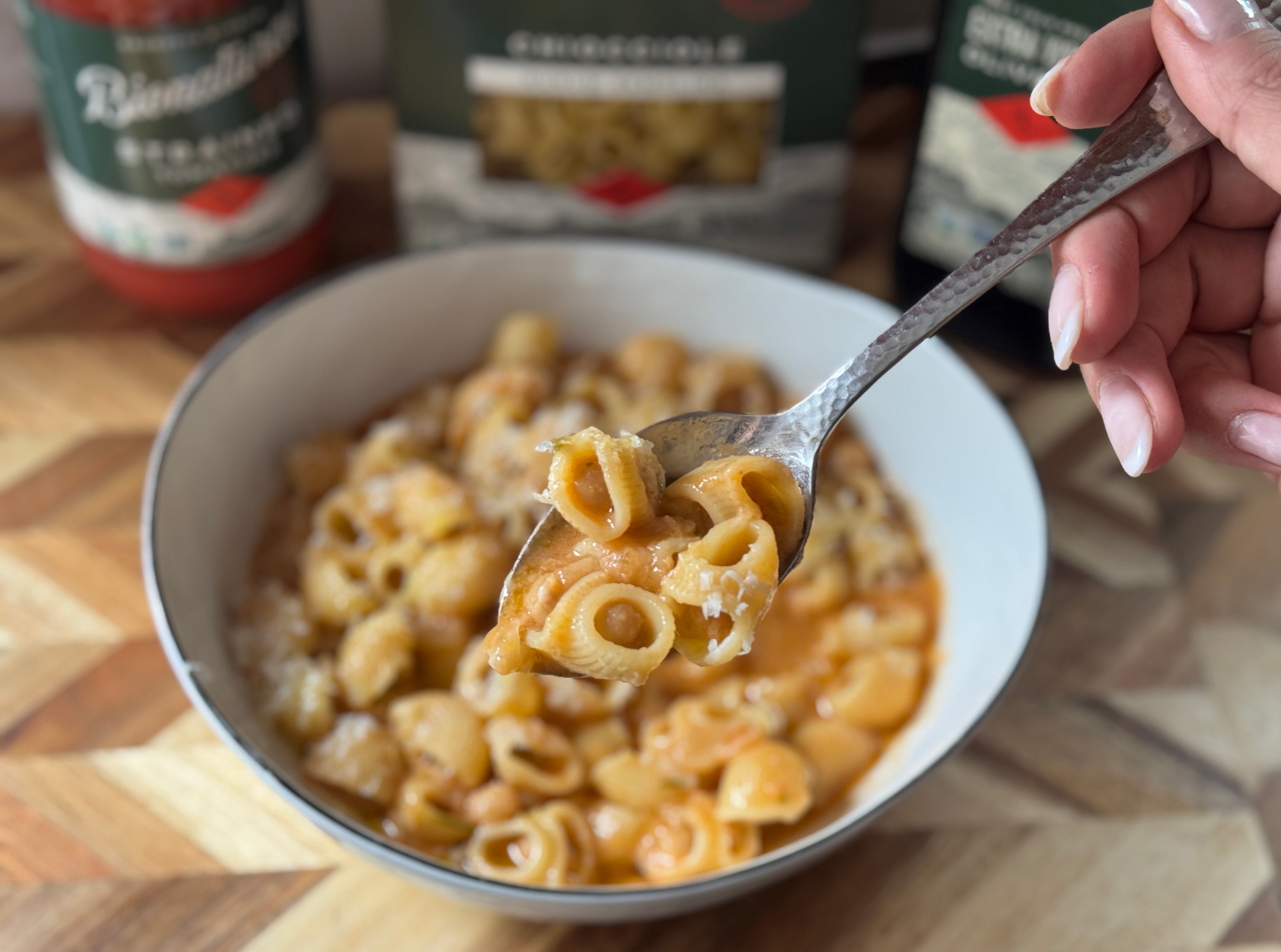 Recipe by Janine Bruno. This delicious and nutritious pasta dish is authentic Italian cooking at home made easy. Our favorite thing about it? The way the chickpeas nestle inside the Chiocciole for the perfect bite every time!