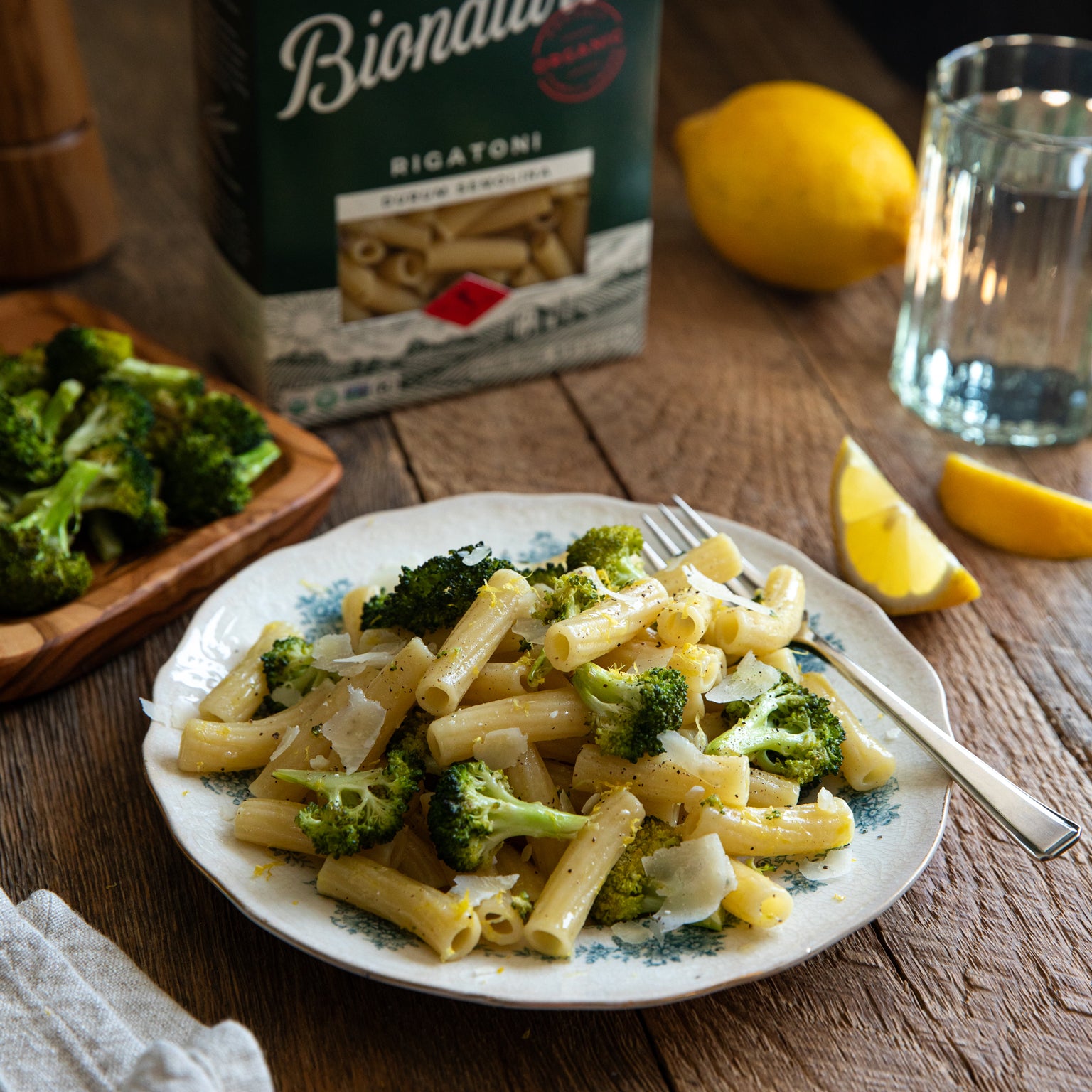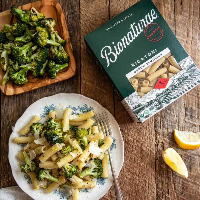 With a simple list of ingredients, roasted broccoli is the star of the show in this quick and tasty recipe. We made this recipe with broccoli, but any short cut of Bionaturae pasta will do.