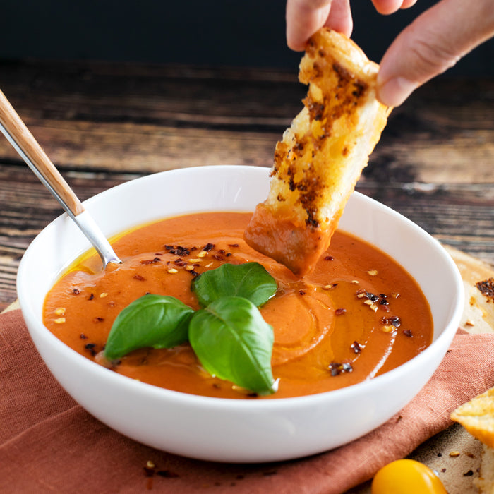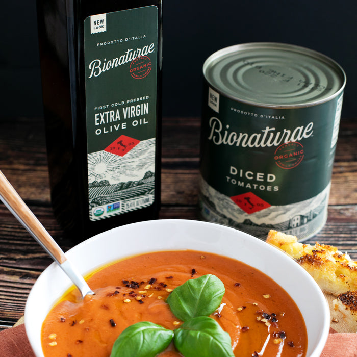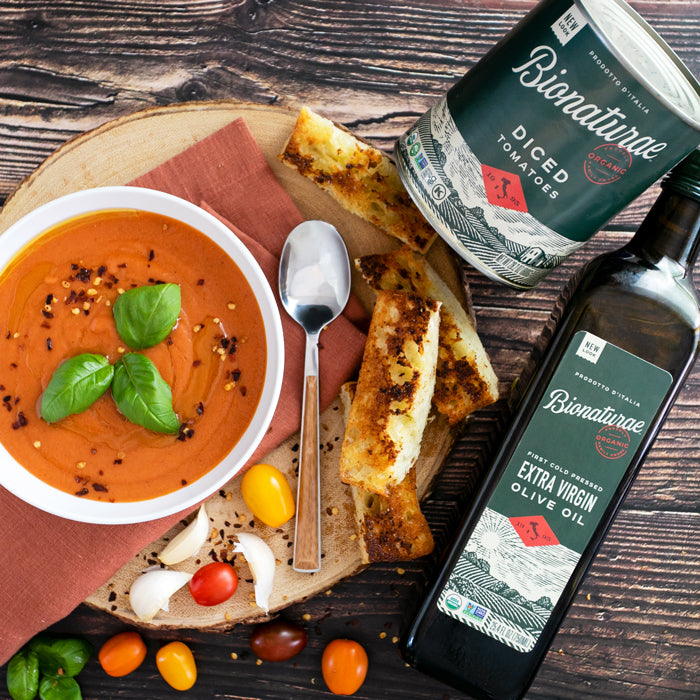 Recipe by Katie Farina. Soup that speaks the language of Italy: Bionaturae 100% Organic Tomatoes Extra Virgin Olive Oil, a couple teaspoons of basil, and a sprinkle of Italian soul. Buonissimo!