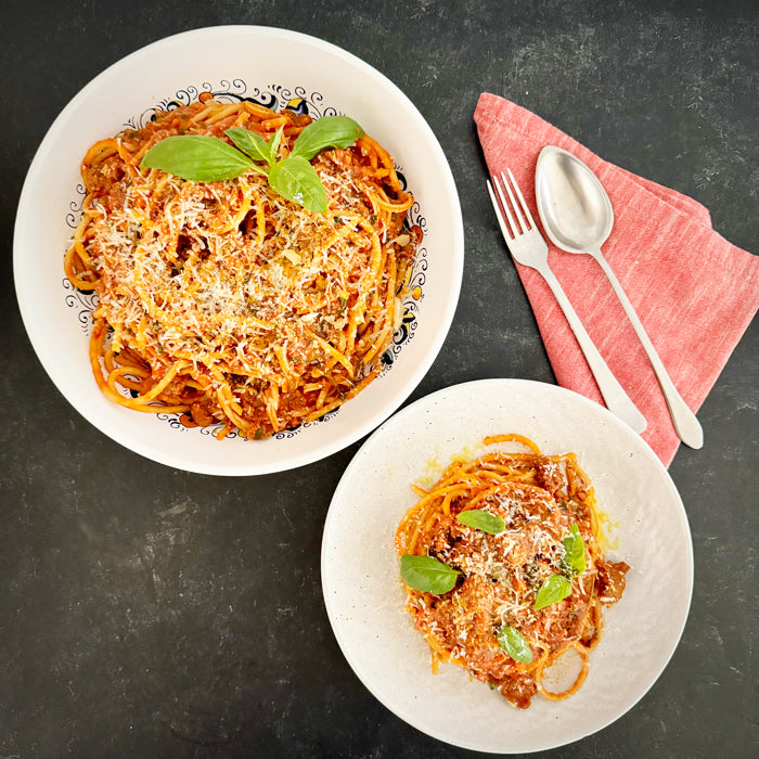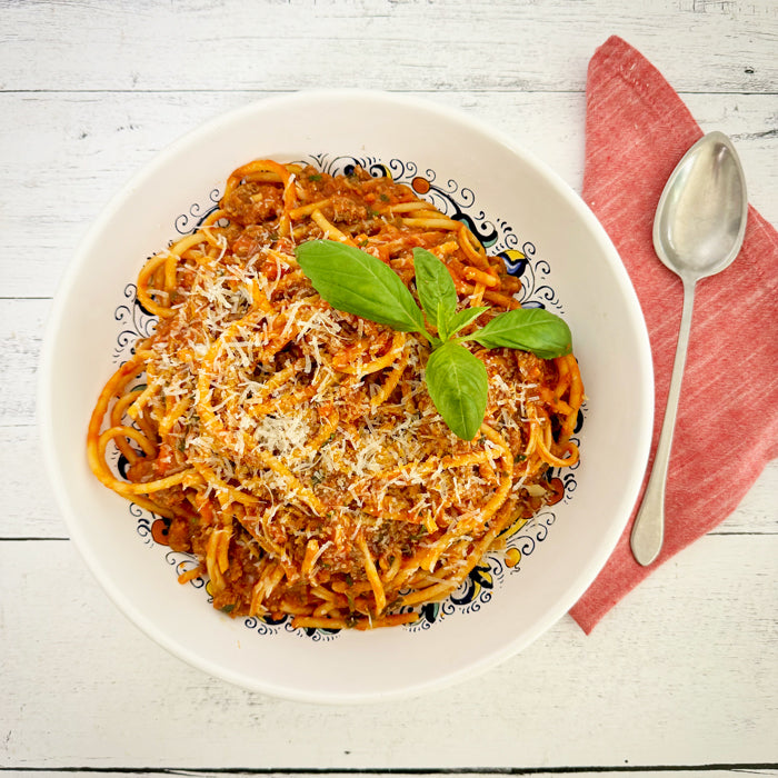 While beef is a traditional choice for meat sauces, we've made this Sausage Ragù with pork for a tender and flavorful sauce—but the flavor here is so much more than just ground meat and tomatoes! The key to this recipe begins with a slowly cooked "soffritto.” Soffritto is what the Italians call that trilogy of vegetables that are the start of the most famous and delicious recipes: onions, carrots, celery, and often a generous amount of garlic. There is also one more key ingredient that you cannot skimp on: time. Low and slow is the way to go for a rich and succulent sauce.