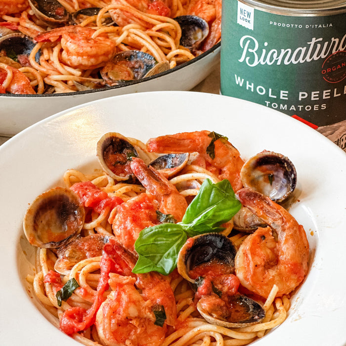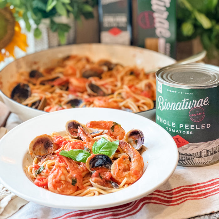 Recipe by Dena Fenza. Spaghetti with Clams and Shrimp sauce is an easy pasta dish that will wow any seafood lover in your home. Ready in under 40 minutes, this recipe is stunning enough for a holiday dish, but quick enough for a weeknight meal. Be sure to serve with crusty bread—it’s hard to resist dunking into the sweet, delicious sauce before you even boil the pasta!