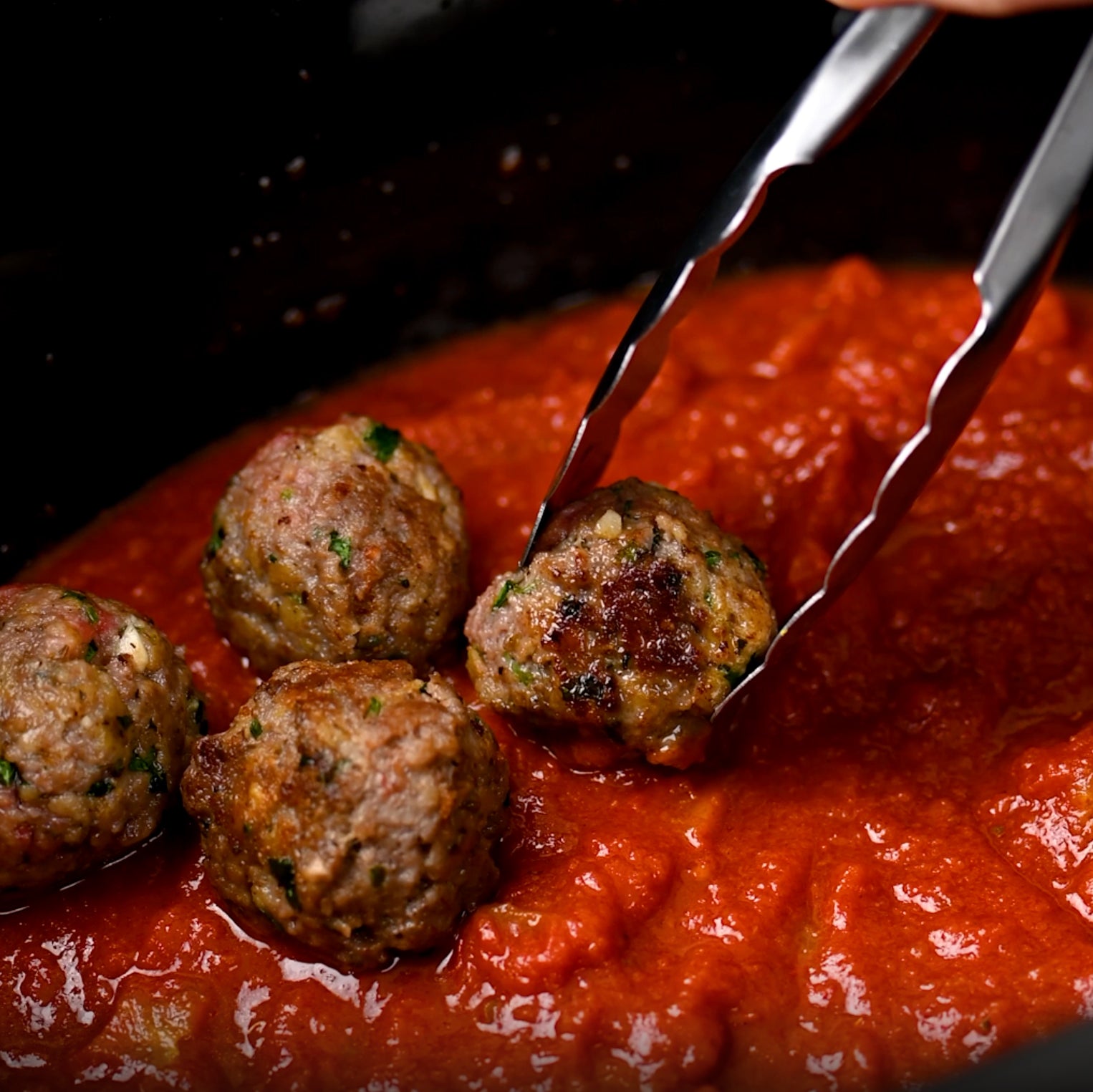 - Heat a tablespoon of Bionaturae Extra Virgin Olive Oil in a skillet. Brown meatballs on all sides, 5–6 minutes. They don’t need to cook through, just a golden crust for flavor.