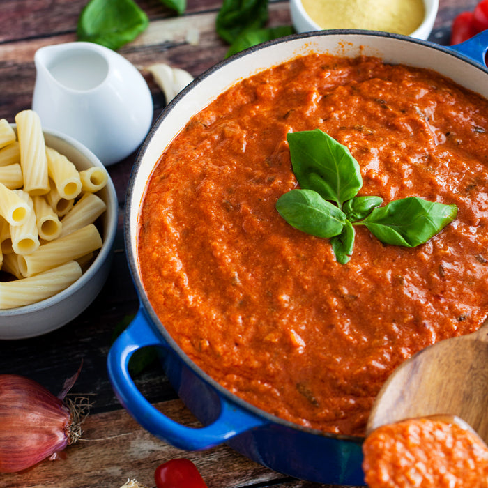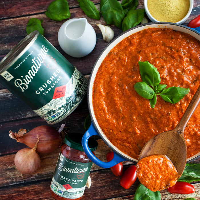 Recipe by Katie Farina. Indulge in this tasty classic Tomato Basil Cream Sauce. Crafted with care, this recipe combines the richness of our Bionaturae Olive Oil, the warmth of garlic and shallots, and the vibrant flavors of fresh basil and Bionaturae Tomatoes. Finish with a touch of cream and you'll have a sauce that will transport your taste buds straight to Italy. Perfectly versatile for any dish, this sauce is sure to impress.