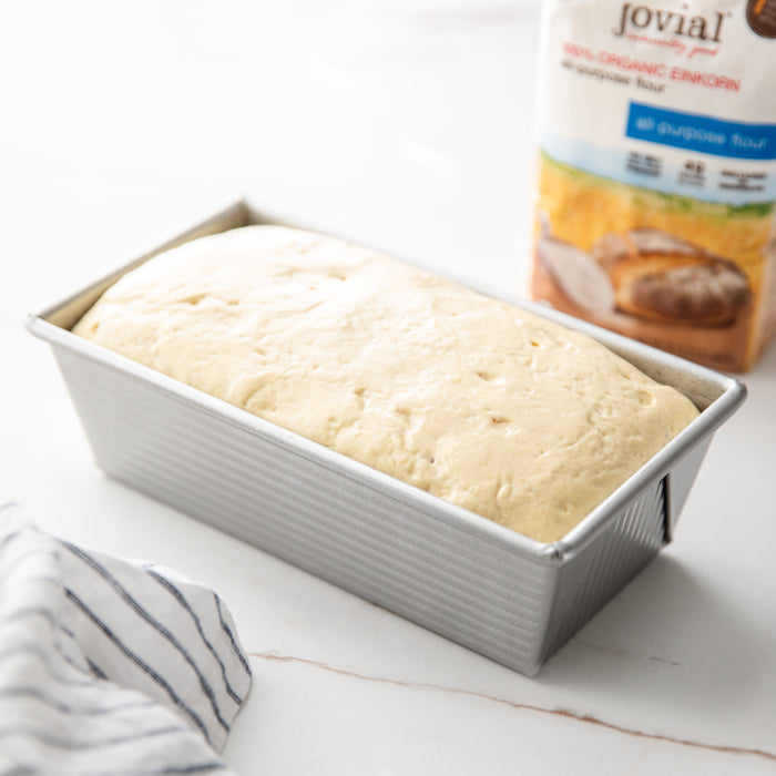 This is the recipe we recommend to a lot of you who have never worked with einkorn before. Just a few steps and only 2 hours from start to finish, this recipe requires no kneading and results in a simple and flavorful loaf that is perfect for morning toast or afternoon sandwiches. We also love this one to make into croutons or pulse into breadcrumbs for your savory dishes.