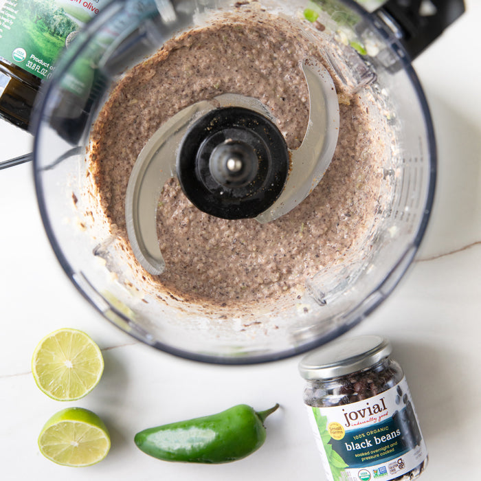 Perfect for dipping tortilla chips and veggies, this Black Bean Dip recipe combines our 100% Organic Black Beans with traditional flavors of garlic, jalapeños, and cumin—plus a twist: mango, tomato, and corn tossed in at the end for an extra level of flavor and texture. We recommend using an immersion blender to make this dip extra smooth and creamy, but this recipe also comes together well in a food processor.