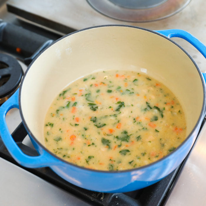 - Add the remaining jar of whole beans and baby spinach to the pot and cook for 10 minutes.