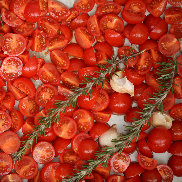 - Season tomatoes with 1 tbsp. olive oil, salt and rosemary; roast tomatoes at 375°F for 25 minutes.