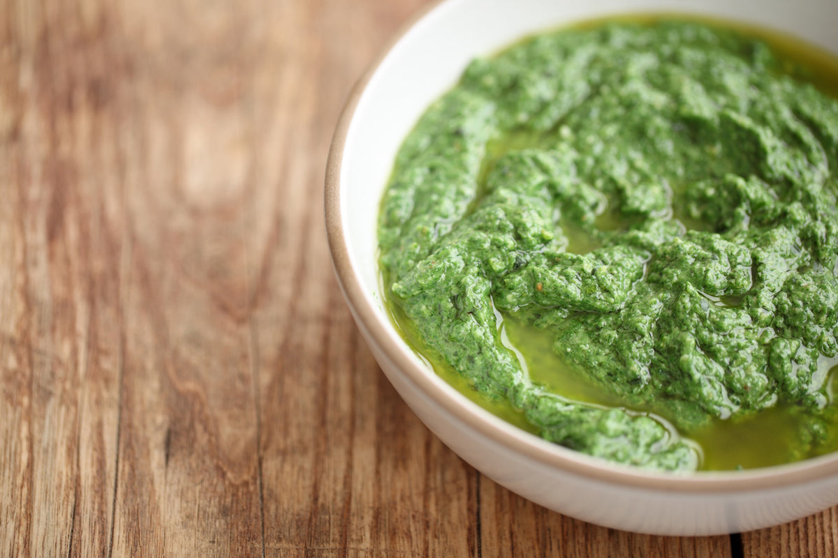 - Squeeze water from spinach, add to pesto with 2 tbsp. of oil and pulse until creamy. Add cheese if you like.