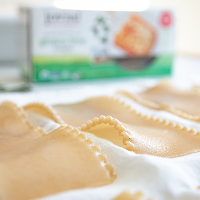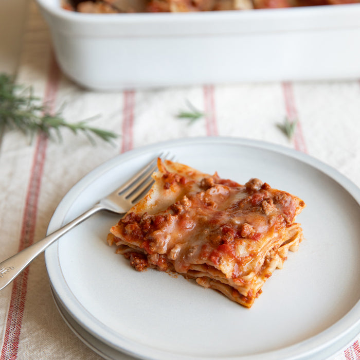 Recipe from the Jovial Test Kitchen. Adapted from our founder’s beloved Gluten Free Lasagna Bolognese, this version is made without any dairy, but all of the creaminess! Once you smell this dish coming together, you will understand why traditional Italian food is so iconic. The secret to this recipe is the besciamella, a regional tradition in Bologna. Instead of the classic milk and butter, broth and olive oil are whisked into a silky and delicious sauce that makes each layer as creamy as the original! You may add in a dairy free cheese if you wish, (an ounce to each layer) but we think it’s even better without.