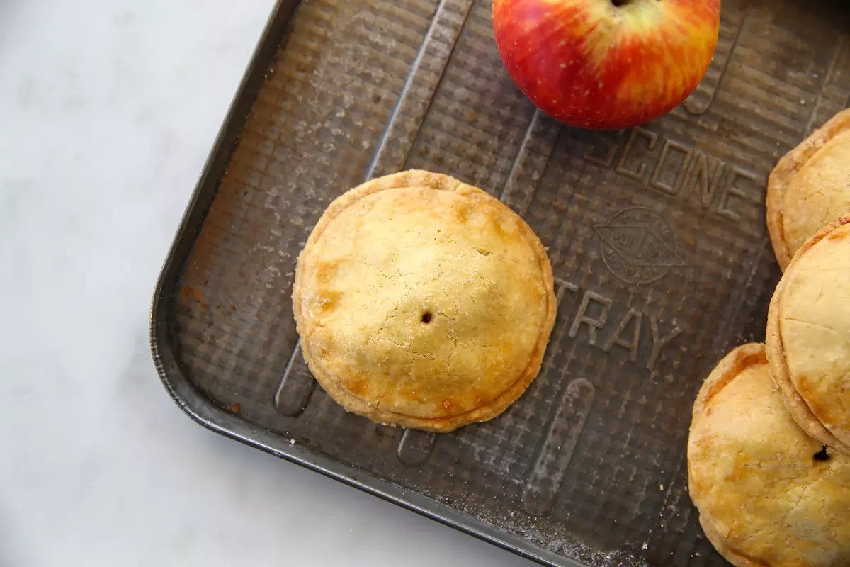 - Bake the pies for 25 to 28 minutes, until golden brown. Cool on the baking sheet for 10 minutes, then transfer to a wire wrack.