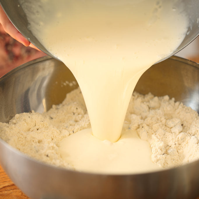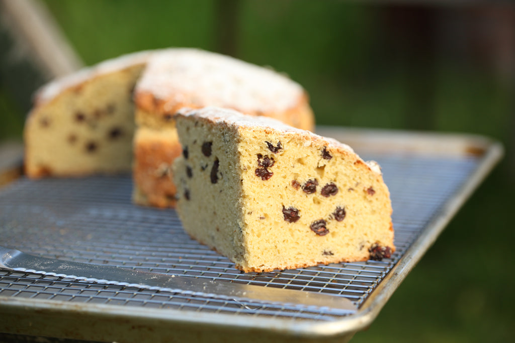 Soda bread is quick and simple to prepare and tastes just fabulous when made with jovial’s all-purpose einkorn flour. For a moister texture, we recommend wrapping the freshly baked loaves in a clean tea towel while they cool. The characteristic cross marking, cut into the dough before baking, allows room for the loaf to expand in the oven and provides four sections, also known as “farls.”