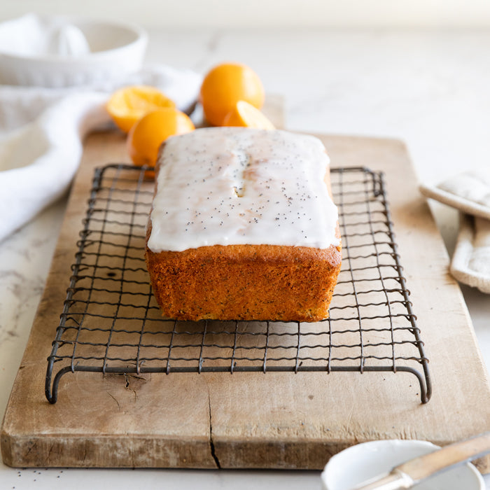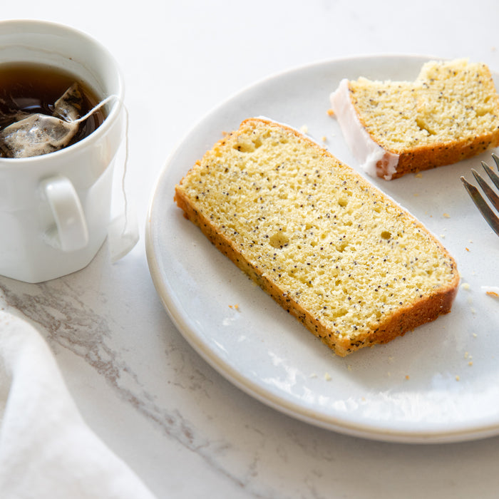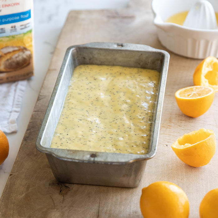 - Fold half of the flour mixture into the egg mixture. Fold in half of the yogurt mixture. Repeat. Fold in poppy seeds.