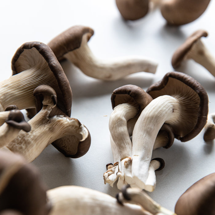 2. In the meantime, wash the mushrooms and cut the end of the stems off. When the water reaches a rolling boil, blanch the mushrooms for two minutes.