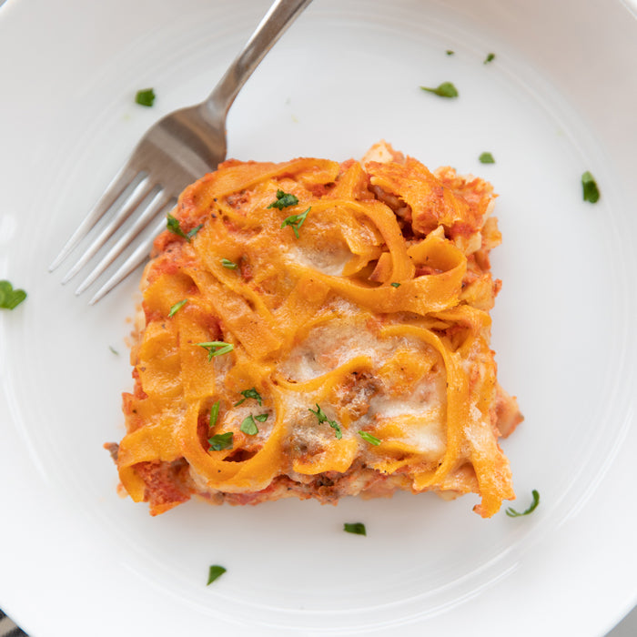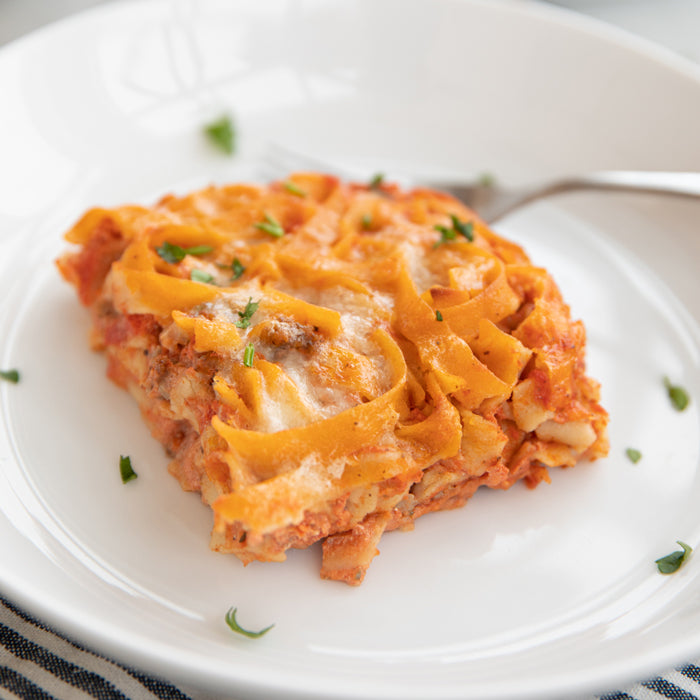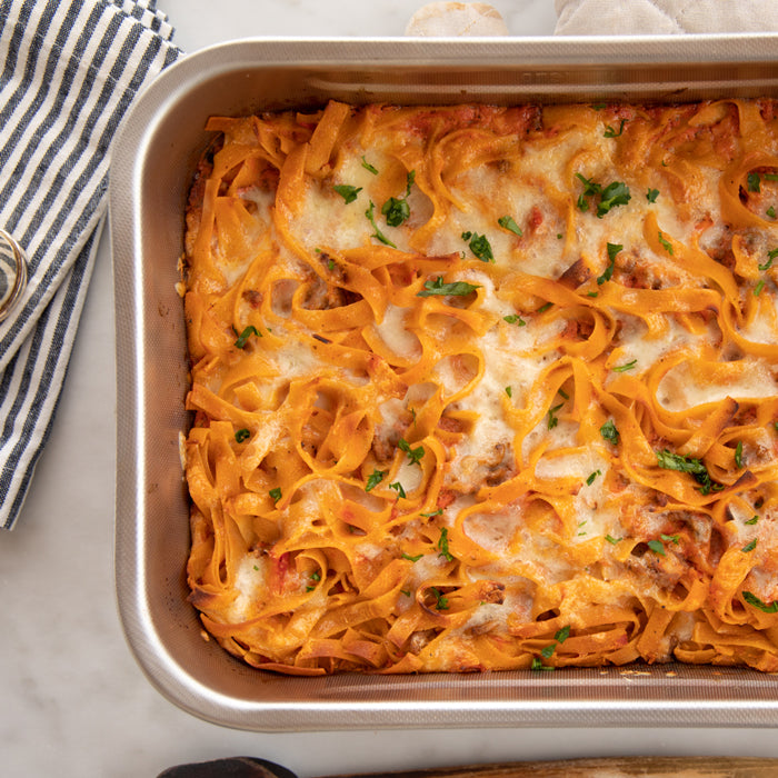- Uncover and bake for 20 to 25 minutes, until the edges of the noodles begin to brown. Let stand for 5 minutes and serve.
