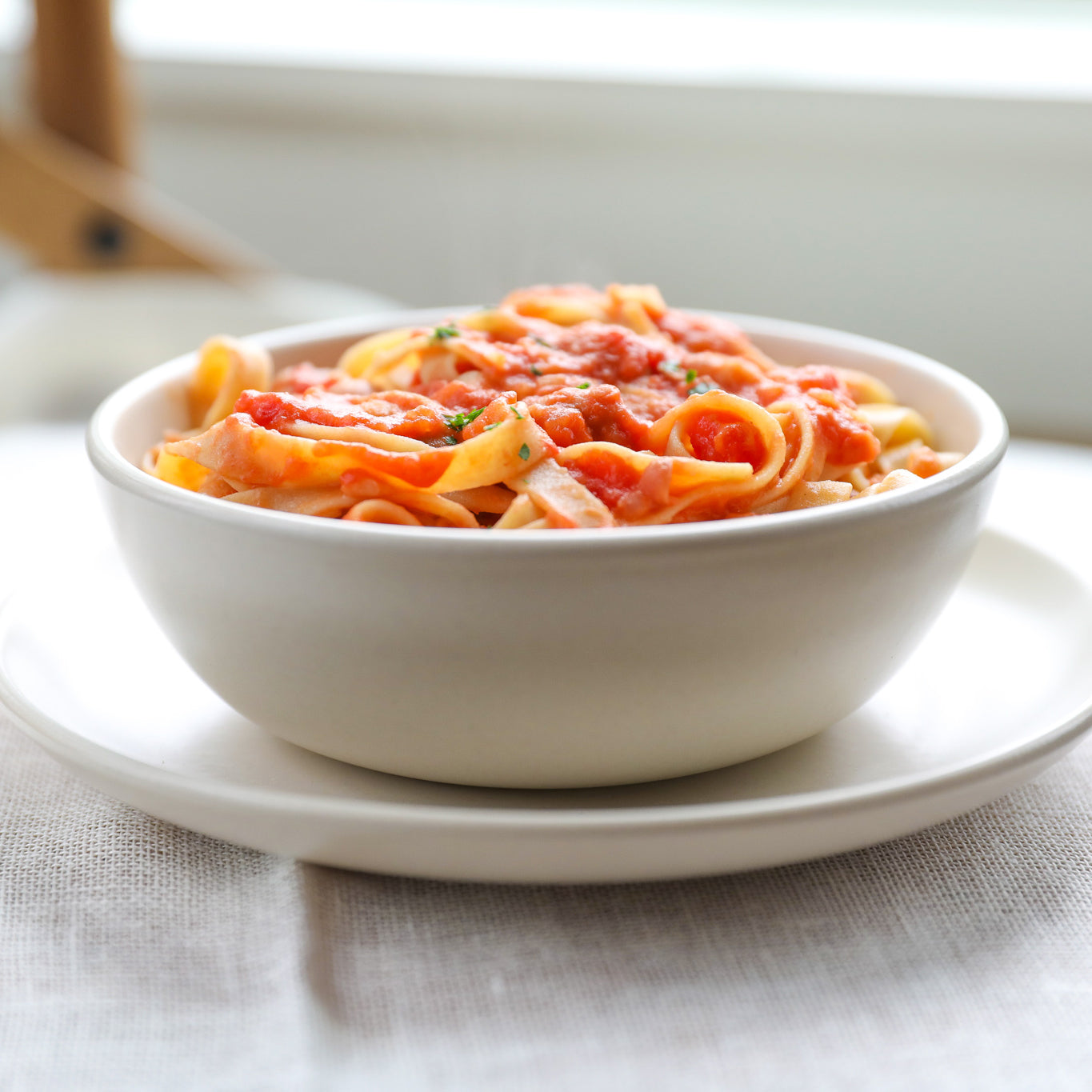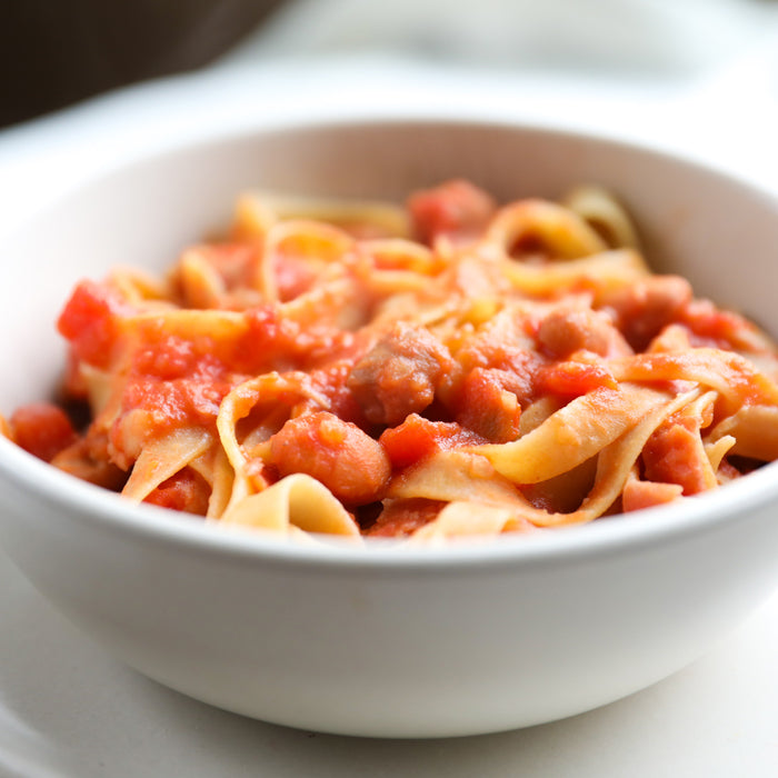 - Bring 3 quarts of water to a boil, add 1 tablespoon of salt (or amount desired), add tagliatelle to water, and cook for 10 minutes.