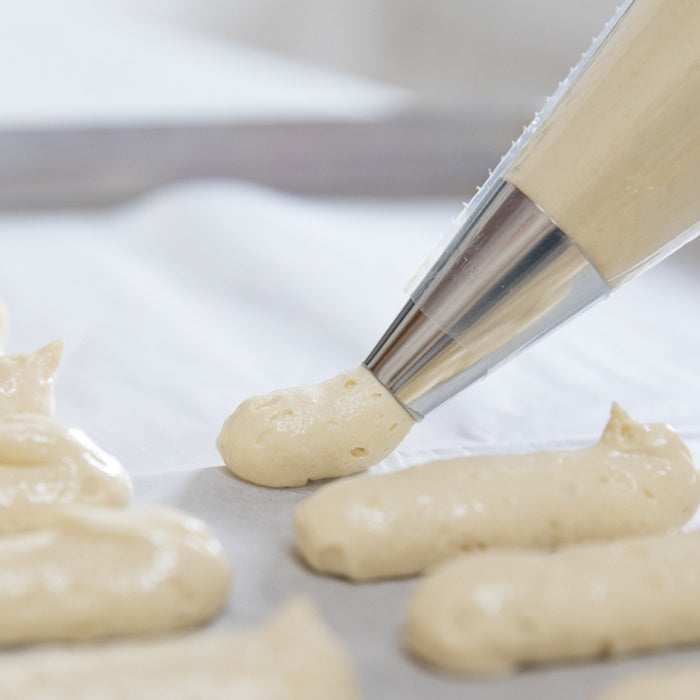 - Fit a pastry bag with a 1-inch round pastry tip. (If you do not have a pastry tip you can snip off the end to create a 1-inch opening.)