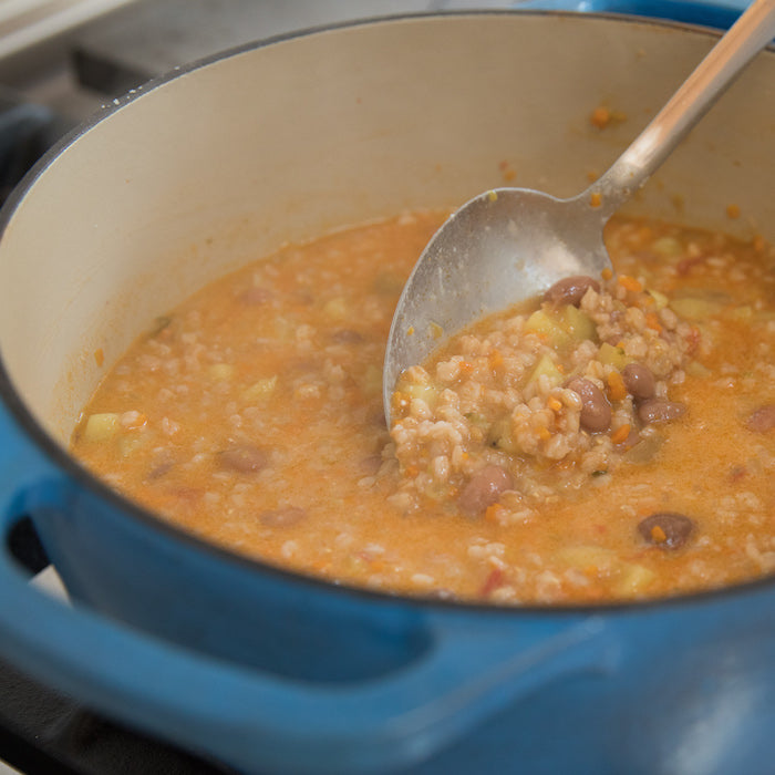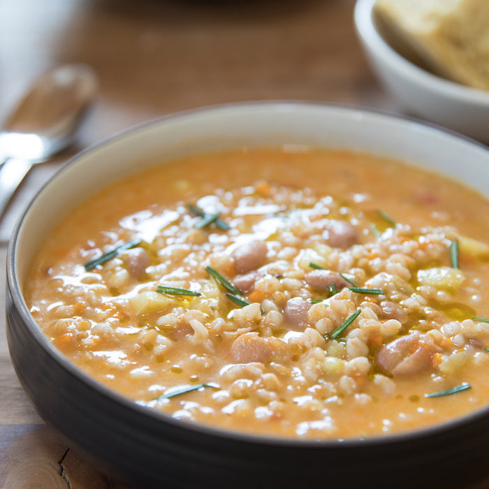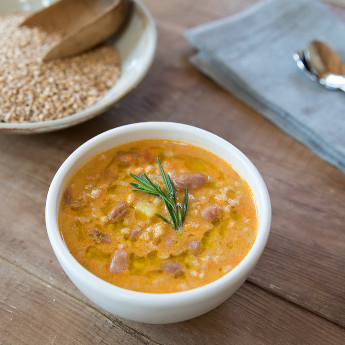 You may soak the einkorn overnight before making the soup by covering them by placing them in a bowl and covering them with 2-inches of water. However, if you forget to soak your wheat berries, you can still make this soup and it will be delicious.