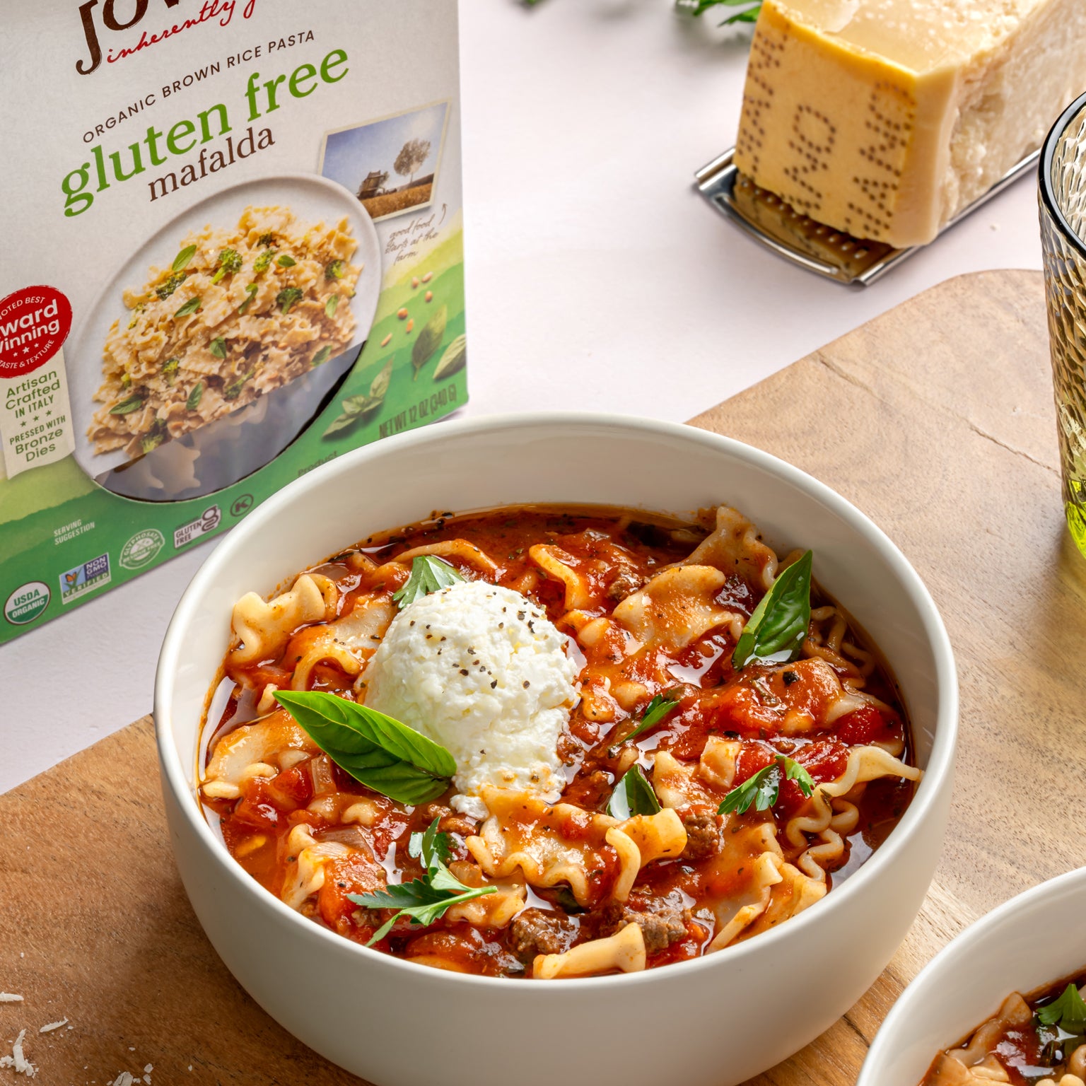 Recipe by Janae Cox, Clean Monday Meals. This rich and flavorful "lasagna" soup turns a familiar favorite into an easy, weeknight comfort dish, featuring our Brown Rice Mafalda for perfectly al dente bites—without the need to break up lasagna sheets!