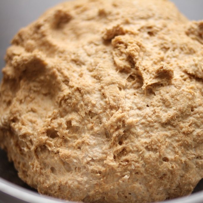 3. Mix all of the ingredients together with a stiff spatula or an Einkorn Kneading Tool until the flour is mixed well, forming a wet and sticky ball of dough. Let rise in a covered bowl in a dark place.