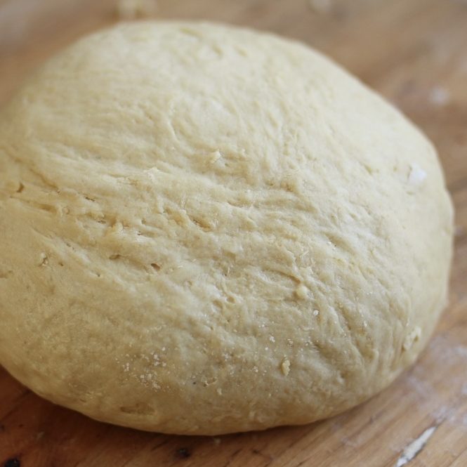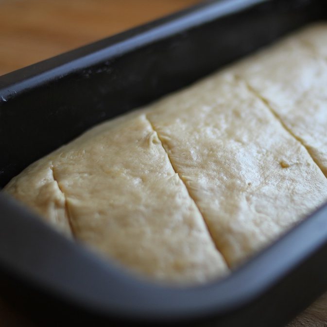 - Dust your work surface and the dough with a few tablespoons of flour. Shape the loaf and place in a buttered 8½ x 4½-inch loaf pan. Cover the pan with buttered plastic wrap and let rise for 30 minutes.