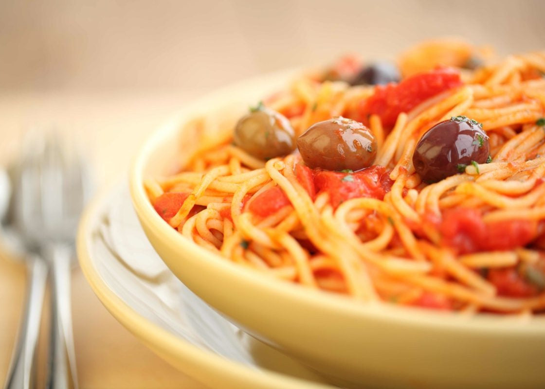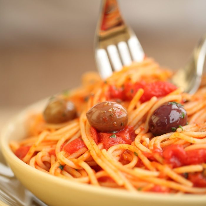 - Serve pasta with puttanesca sauce and, if you like, crushed red pepper.