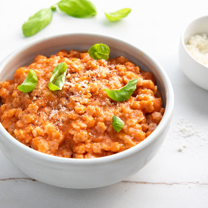 Straight from our owner, Giulia’s kitchen, this incredibly creamy, one-pot pastina is a classic Italian dish that’s perfect for a cold evening. Featuring our tiny Brown Rice Stelline pasta, this recipe begins with Bionaturae Strained Tomatoes for a sauce with the most amazing texture. Stir in the pasta, chicken stock, and plenty of grated Parmigiano and Pecorino for a dish that’s pure comfort food. You can top it with a bit of torn basil, but it’s also delicious without!
