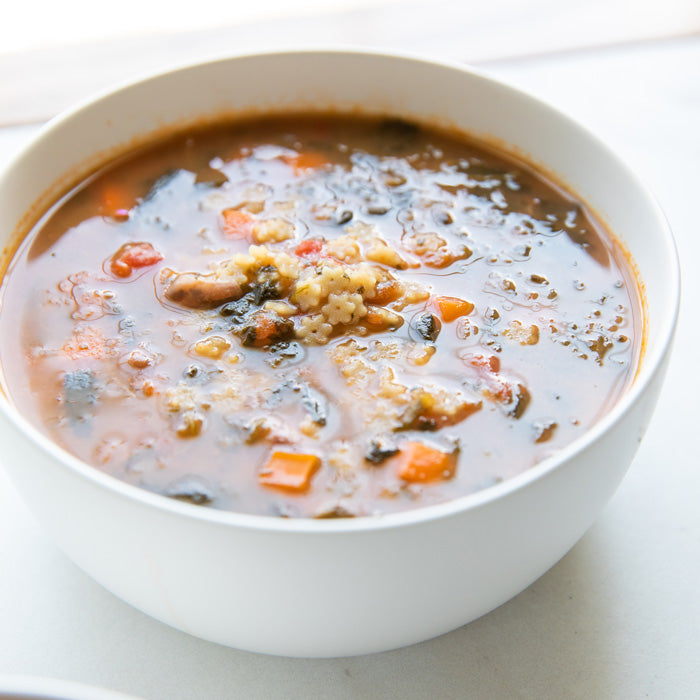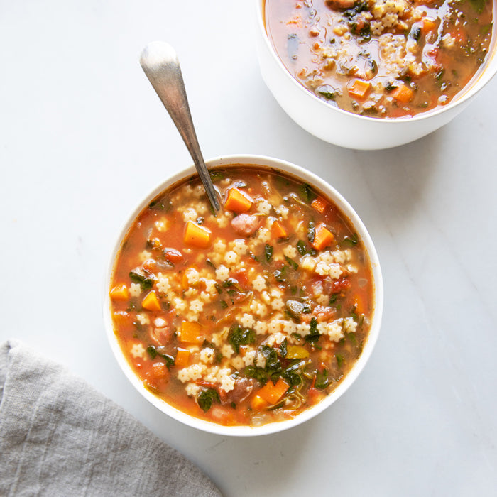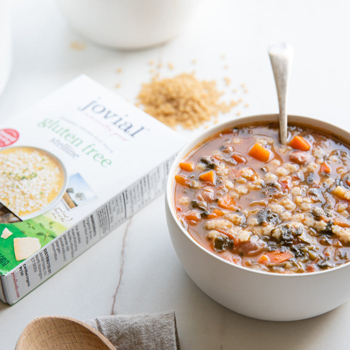 Minestrone is a nourishing soup we love to enjoy year-round! While there are countless variations of this ancient Roman recipe, it usually consists of vegetables, rice or pasta, and beans. In the version, we packed in wholesome ingredients like Jovial Borlotti Beans, Jovial Diced Tomatoes, carrots, spinach, Kettle & Fire Classic Chicken Bone Broth, and Jovial Brown Rice Stelline. Our tiny pasta stars cook up to perfection, complementing the flavorful broth and tender vegetables. This is just the recipe to make when you’re looking for simple, yet comforting homemade meal to serve to loved ones.