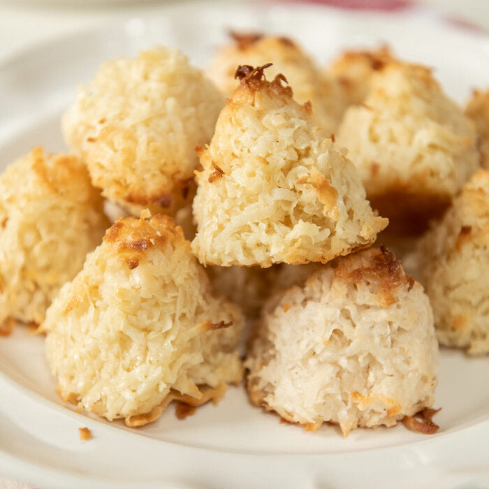 - Fold the coconut into the aquafaba. Shape 2 tablespoons of the macaroon mixture into a ball or cone and place on the prepared baking sheet, spacing them 1½ inches apart.