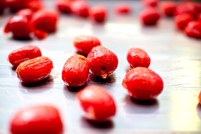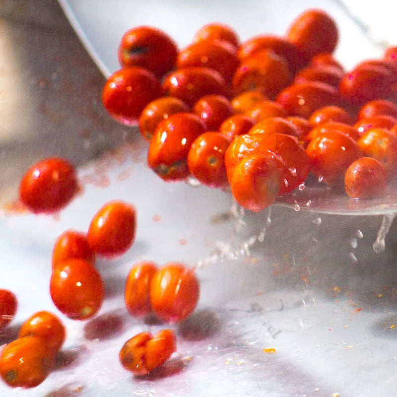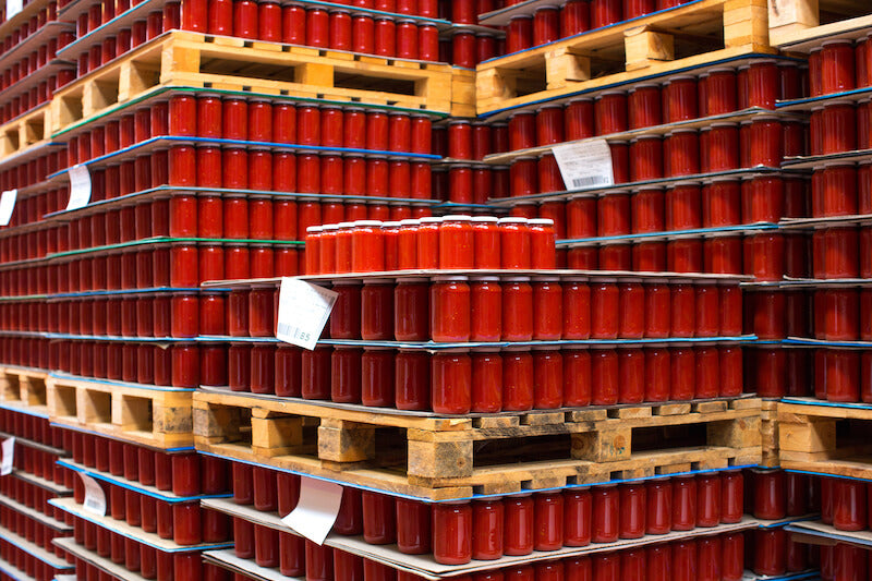 We have a tight relationship with our tomato manufacturers in Italy who sort, wash, crush, dice, peel and jar the tomatoes in a stunning 16th century factory. Because our tomatoes are organic and packed fresh, the jarring process needs to be quick. From the moment the tomatoes arrive to the facility to the time they’re added to the stack of jars, ready to ship, it’s only been a few hours. They are extremely talented at packing the tomatoes, and we love spending time with them while overseeing production. It doesn’t hurt that the factory smells like a huge, delicious pizzeria - sweet and intensely rich!